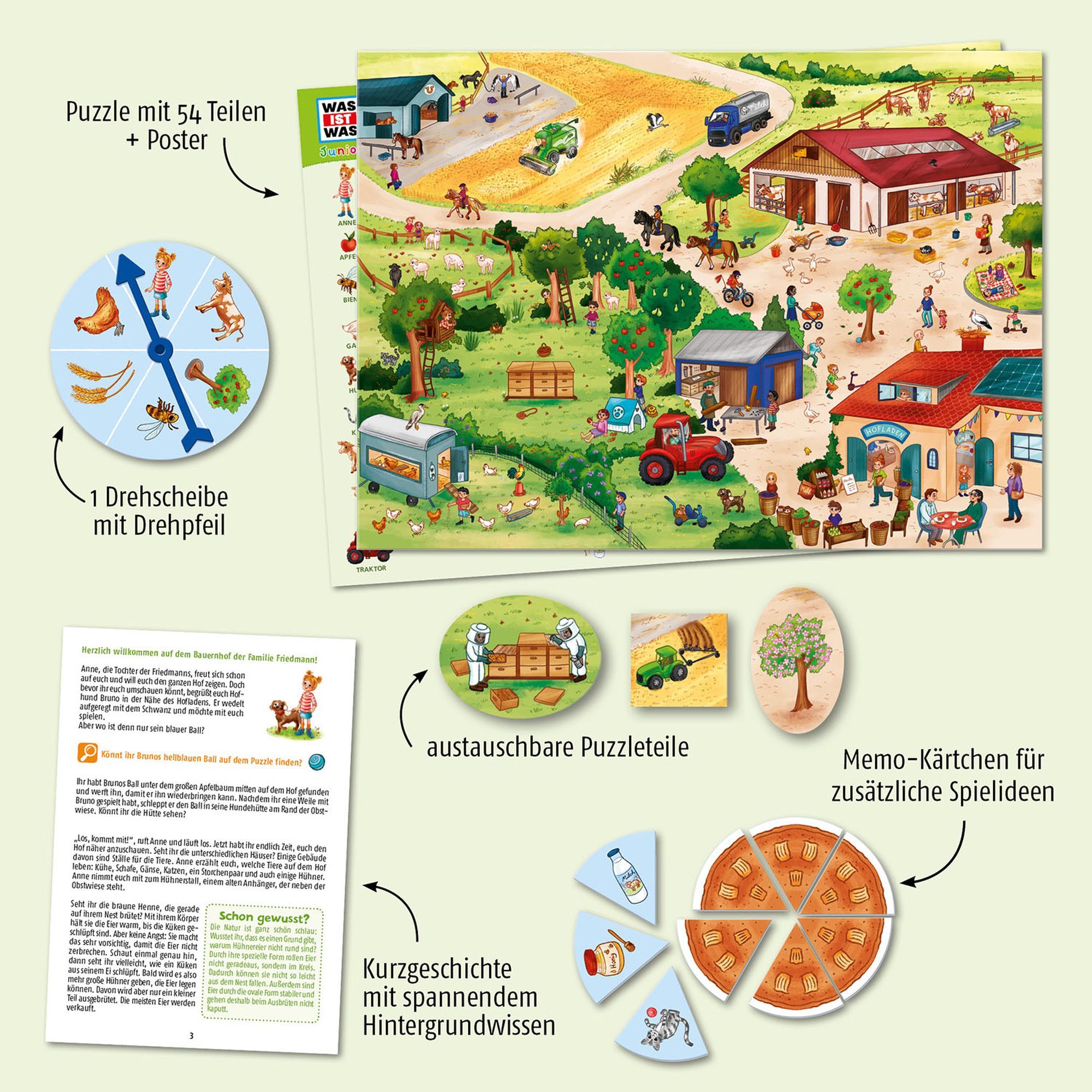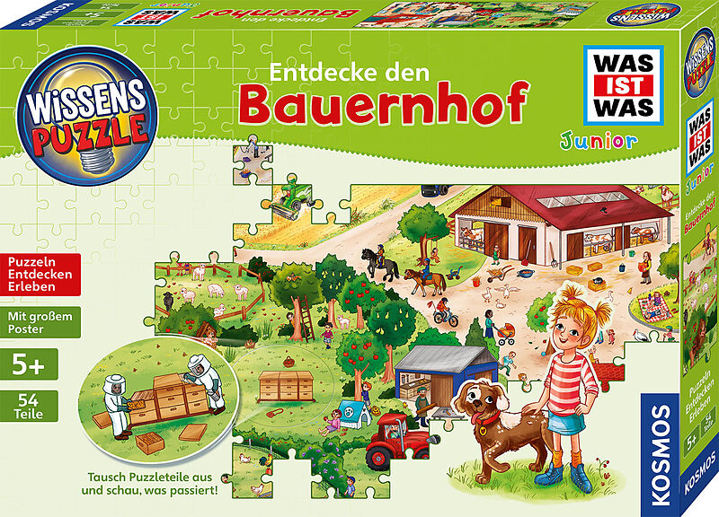 Wann schlüpft das Küken? Woher kommt das Essen auf unserem Teller? In diesem Puzzle ab 5 Jahren entdecken Kinder die aufregende Welt des Bauernhofs. Die Geschichte zum Vor- oder später auch zum Selbstlesen hilft dabei das Wimmelbild zu puzzeln. Ob Suchspiel, H...
