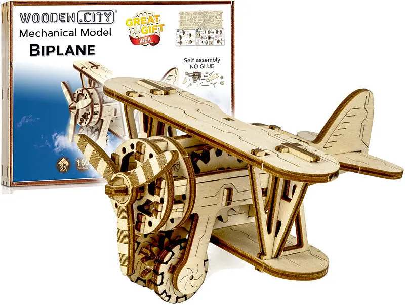 Kein Kinderspielzeug! Nicht zur Verwendung von Kindern unter 14 Jahren. Modellbauartikel Haben Sie schon immer davon geträumt, Pilot zu werden? Dann sollten Sie diesen Miniatur-Doppeldecker aus Holz zusammenbauen. Der Propeller dreht sich mithilfe eines Mechan...