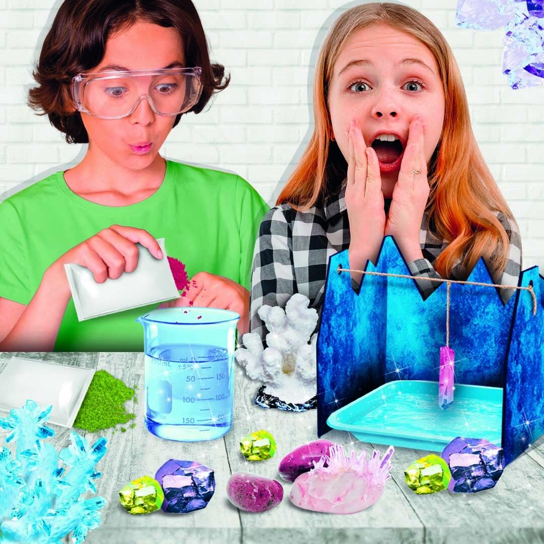 Die Woozle Goozle-Experimentiersets sind an das bekannte Wissensmagazin angelent, das seit 2013 auf Super RTL und Toggo ausgestrahlt wird. Mit diesem Experimentierkasten lässt Du wie von Zauberhand die verschiedenen Kristalle entstehen - und zwar ganz einfach ...