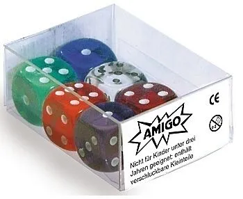 Würfel Transparent W06 Set gem. 1 Set beinhaltet 6 Stück Augenwürfel, Transparent (farblich gemischt), 16mm, 6 Seiten. (Farbsortierung kann differieren). Maße: 5,9 x 4,2 x 2,4 cm