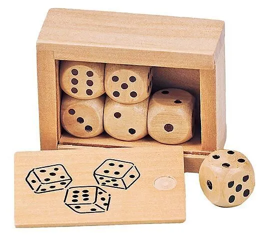 Wer kennt das nicht? Man möchte ein Spiel spielen, aber der Würfel ist verschwunden. Nachschub gibt es mit den 6 Würfeln im praktischen Holzkästchen. Altersempfehlung: 4+ Material: Holz Artikelmaße Würfel: 1,6 x 1,6 x 1,6 cm Artikelmaße Holzbox: 6,2 x 4,5 x 2,...
