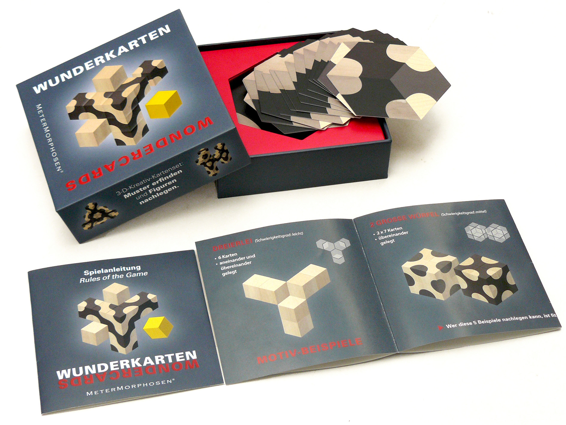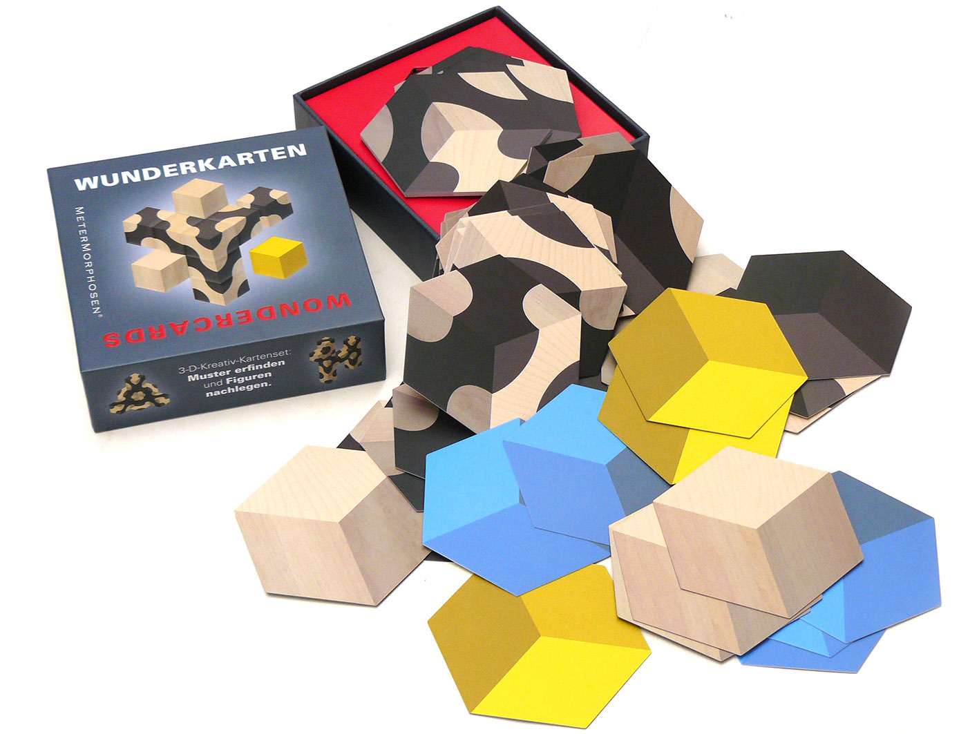 WUNDERKARTEN: Diese flexiblen Papierkarten mit 3-D-Würfeloptik lassen die Kreation der unterschiedlichsten Gebilde zu: Unbegrenzte Legemöglichkeiten in einer anregenden Ästhetik. Dieses illusionistische Spiel verbindet das Beste aus Puzzle, Domino und Patience...