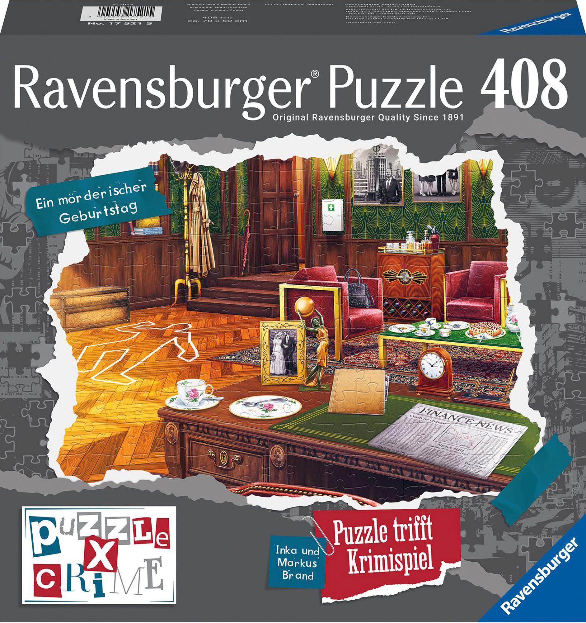 Ravensburger Puzzle X Crime - Ein mörderischer Geburtstag - 406 Teile Puzzle-Krimispiel für 1-4 Spieler Ravensburger Puzzle trifft Krimispiel: Puzzeln - Kombinieren - Fall lösen! Puzzle X Crime verbindet mysteriöse Puzzlemotive mit kriminalistischem Kombinatio...