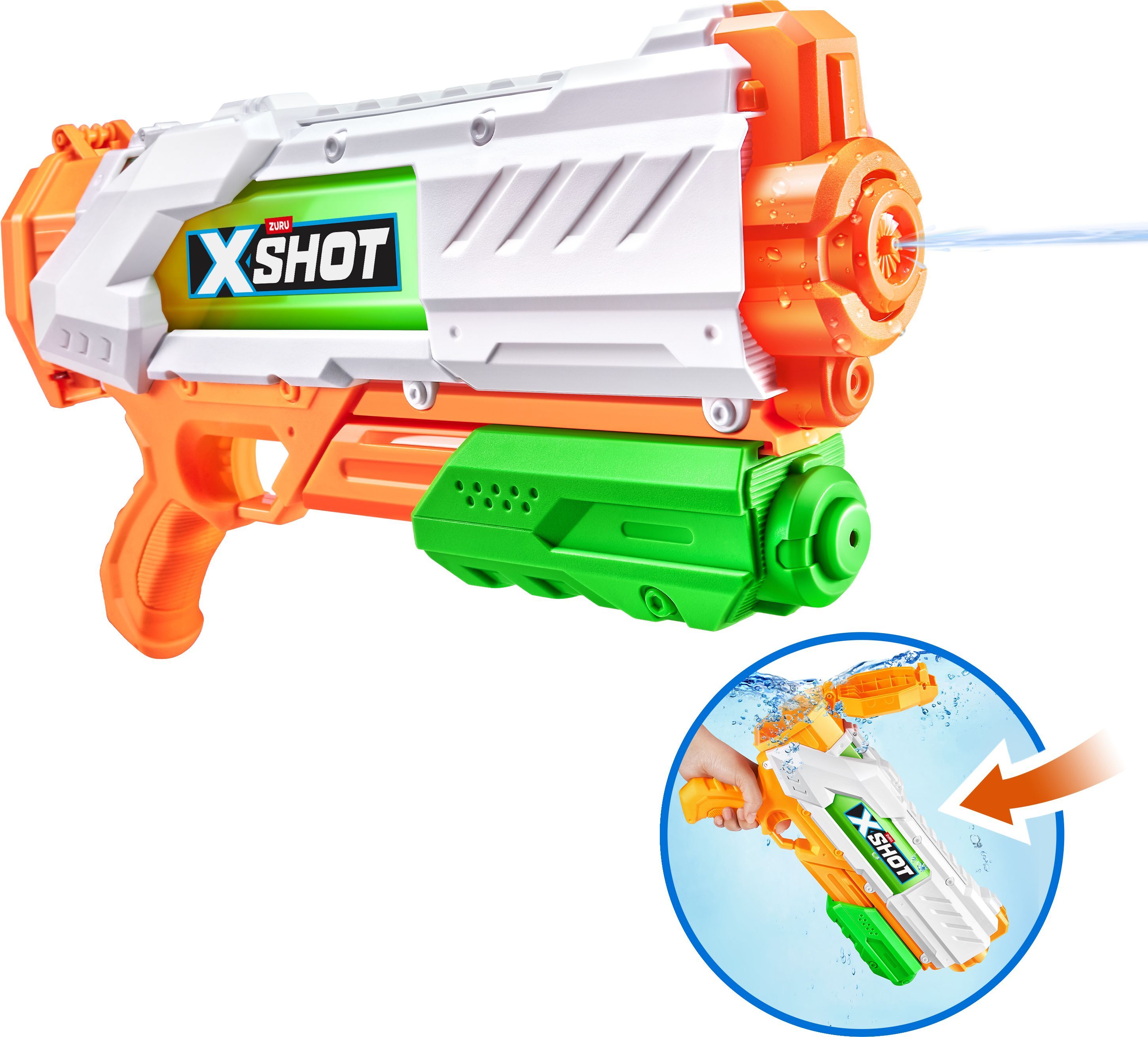XSHOT Water - Fast-Fill Wasserblaster Der XSHOT Fast-Fill Blaster kann in nur 1 Sekunde aufgefüllt werden, damit du deinen Gegnern in der Wasserschlacht immer einen Schritt voraus bist. Dank Schnellverschluss-Technologie einfach unter Wasser tauchen, füllen un...