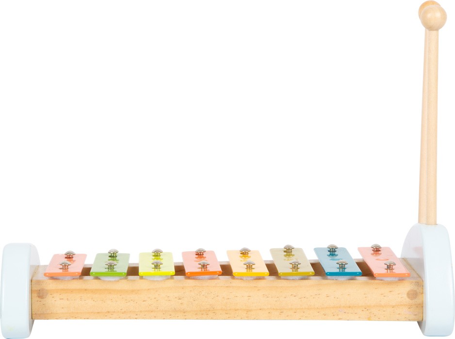 Dieses Holz-Xylophon bietet den idealen Einstieg in die Welt der Klänge! Dabei müssen Kinder noch nicht einmal Noten beherrschen, um dem Glockenspiel erste Lieder zu entlocken! Die Klangstäbe sind farbkodiert und begleiten Kinder zusammen mit dem Notenblatt Sc...