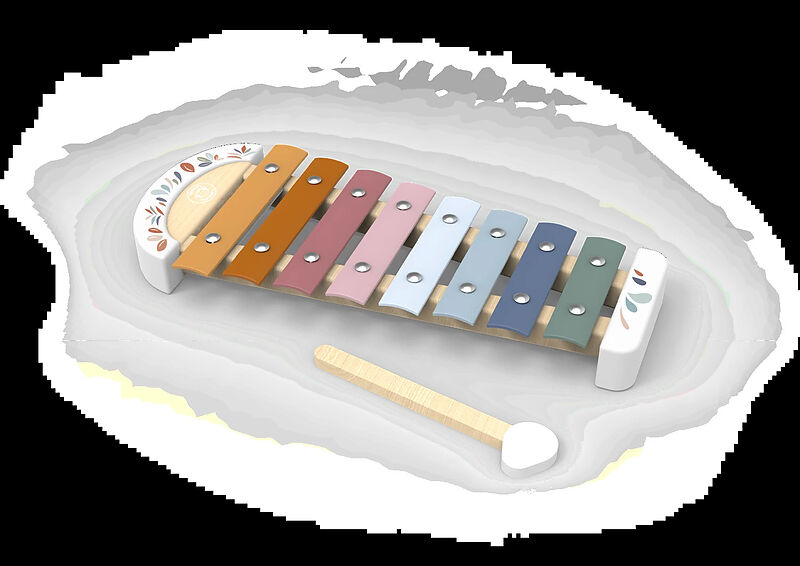Dieses schöne und farbenfrohe Xylophon mit Metalltasten bereitet Kindern viel Freude. Der einteilige Holzschlägel und die abgerundeten Kanten machen daraus ein sicheres Spielzeug. Die acht gestimmten Klangstäbe sorgen für ein authentisches Musikerlebnis. Jede ...
