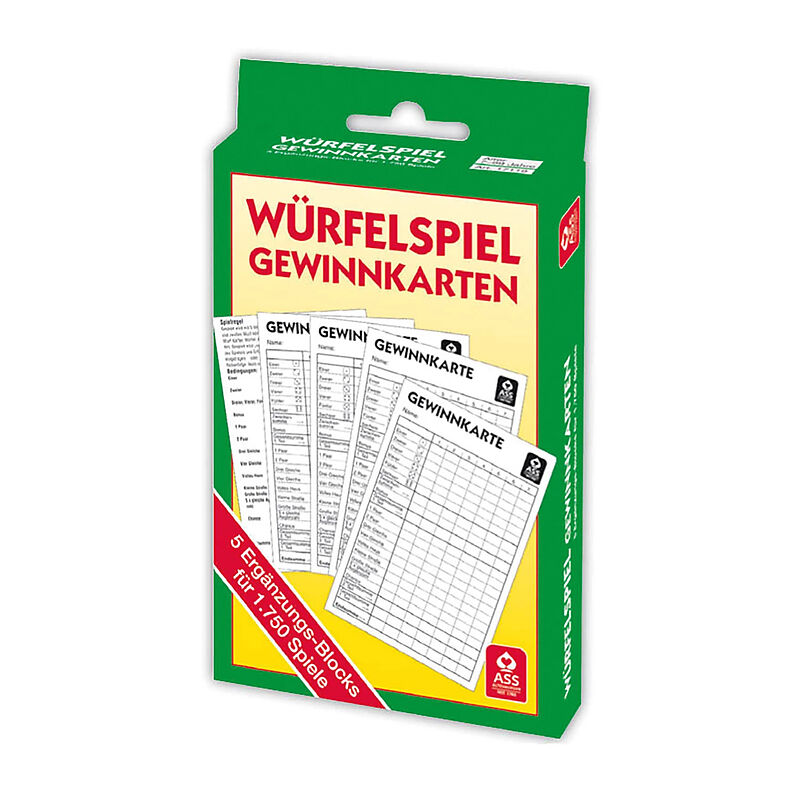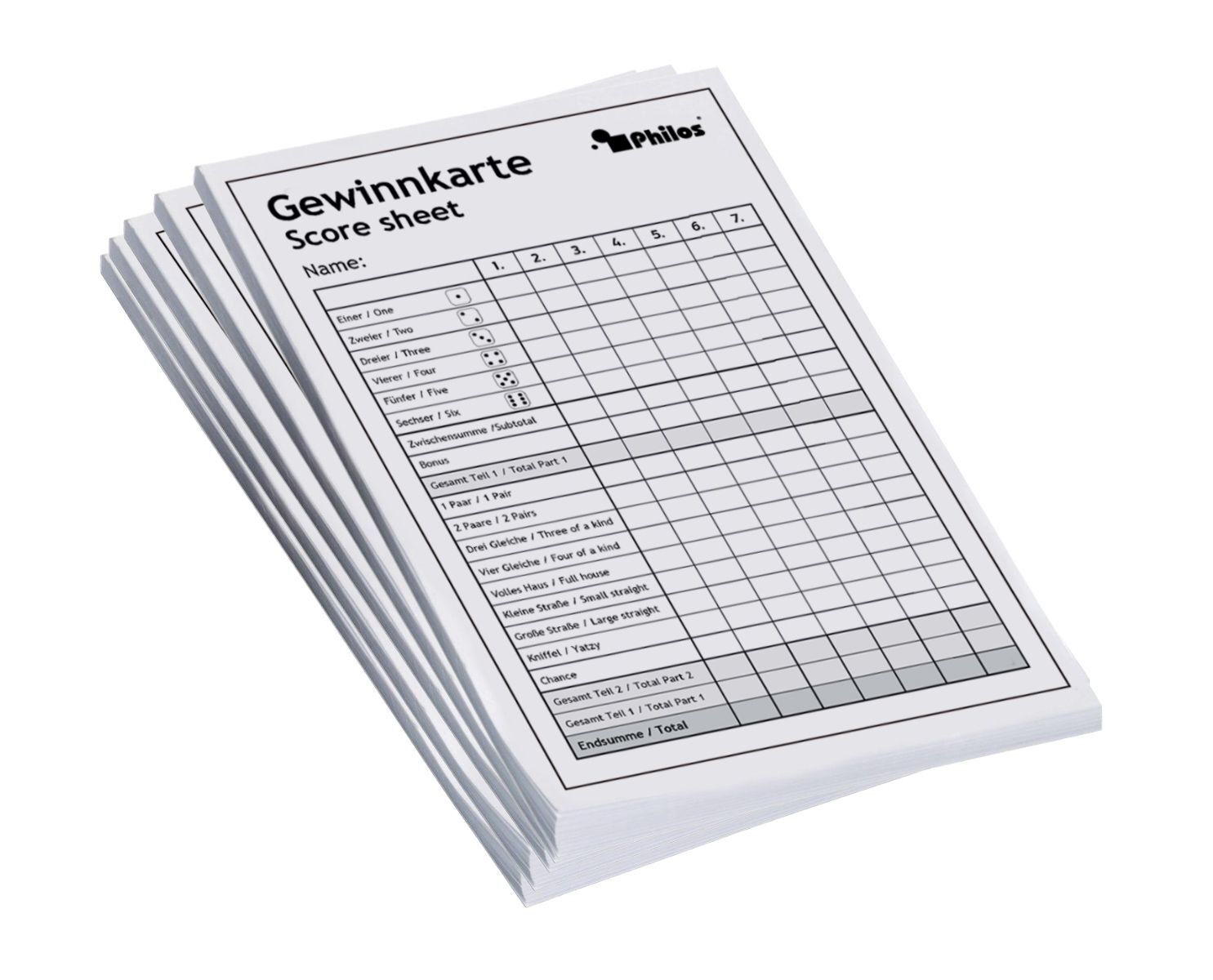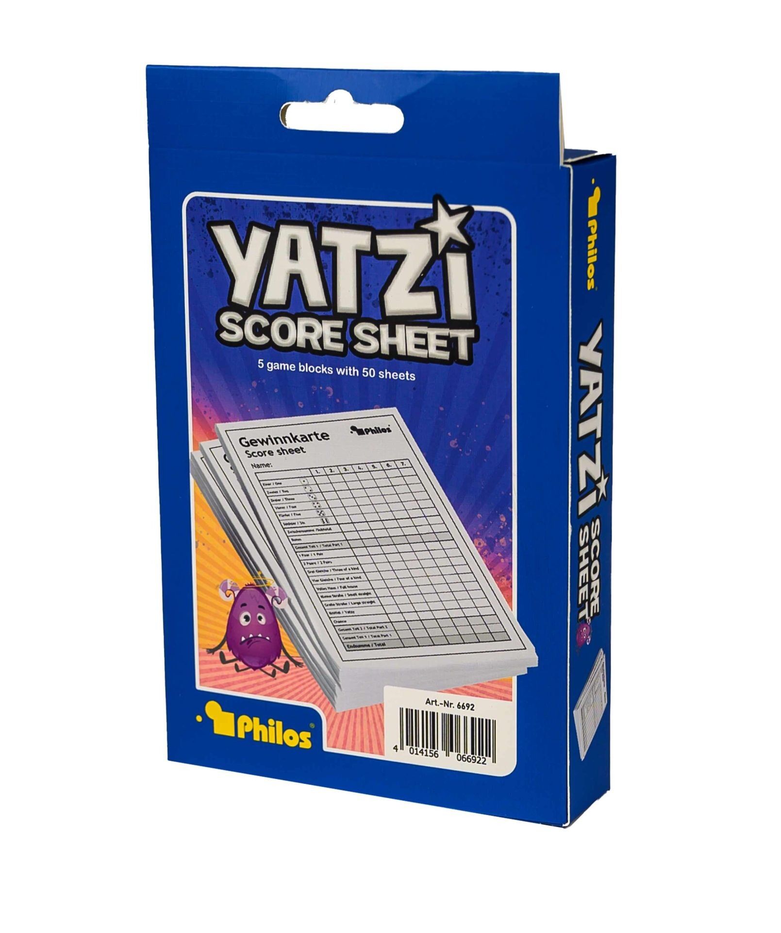 Yatzy, Spielblock, Gewinnkarten, 5er Packung. In einer Packung: 5 Spielblöcke mit je 50 Blättern.Maße Verpackung: 153 x 103 x 27 mm