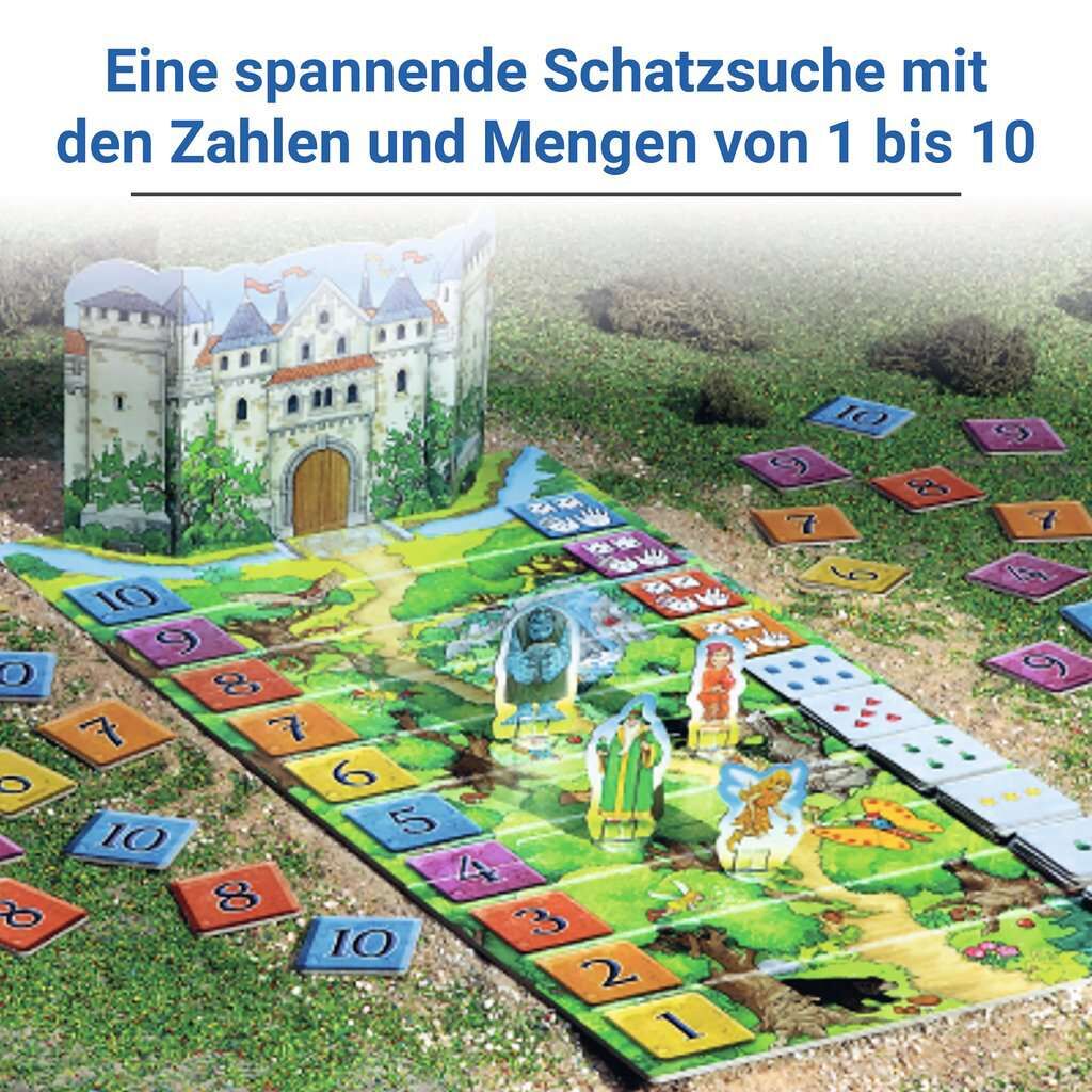 Bei dem Kinderspiel "Zahlen-Zauber" machen sich 2-4 Spieler auf zu einer Schatzsuche mit Zahlen von 1 bis 10. Elfe, Zwerg, Zauberer und Riese machen sich auf den Weg durch den Zauberwald, um ihre Schätze zu suchen. Hier findet die Elfe vier Sterne, dort der Zw...