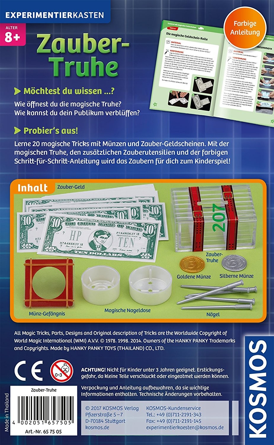 Wie kann die magische Truhe geöffnet werden? 20 zauberhafte Tricks mit Münzen und Zauber-Geldscheinen verblüffen das Publikum. Mit der magischen Truhe, den zusätzlichen Zauberutensilien und der farbigen Schritt-für-Schritt-Anleitung wird das Zaubern ganz einfa...