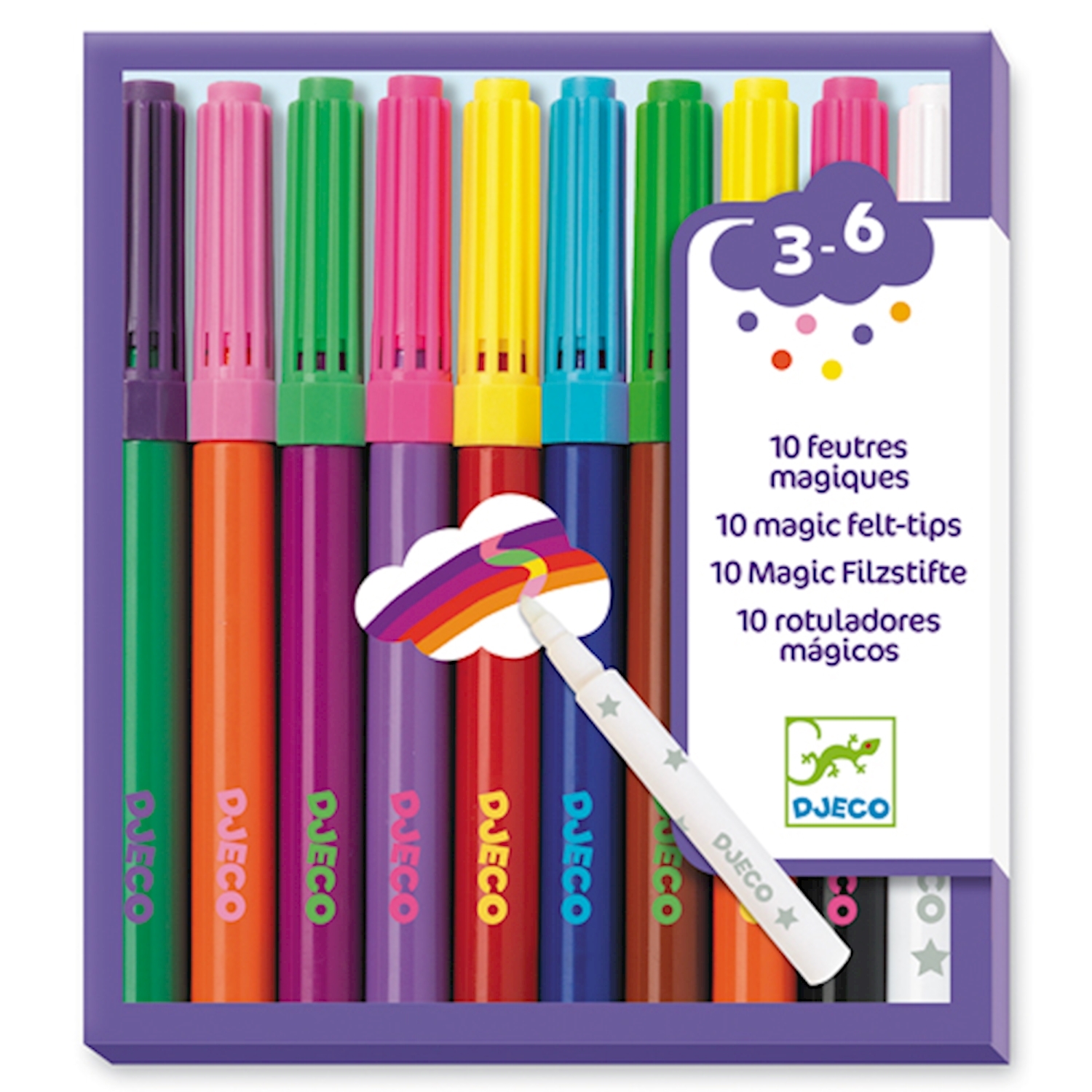 ab 3-6 Jahren 9 x Stifte klassische Farben 1 x Zauberstift Die Farben haben eine sehr gute Deckkraft und eine lange Haltbarkeit. Male mit den farbigen Stiften ein Bild und zaubere mit dem Zauberstift schöne Effekte hinein. Die Farben verändern sich, wenn du mi...