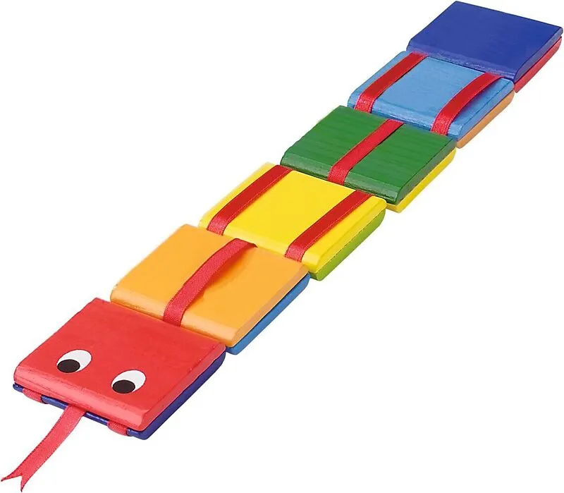Wie geht das? Klappt man den Kopf mit Daumen und Zeigefinder um, klappert ein Plättchen die Schlange hinunter.