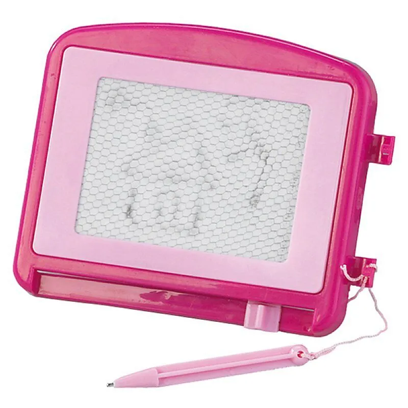 Zaubertafel klein mit Stift, ca. 12.5x10cm, schwarz weiss, aus Kunststoff.