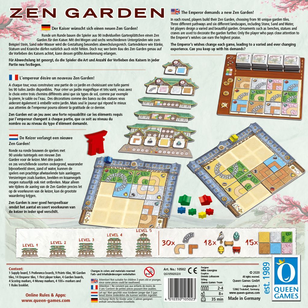 Die Spieler bauen aus 90 Gartenplättchen einen Zen Garten für den Kaiser. Mit Wegen, verschiedenen Untergründen und Gartendekoren wird die Gestaltung besonders abwechslungsreich. Aber auch die Vor- lieben des Kaisers müssen beachtet werden. ab 8 Jahren, 2-4 Sp...