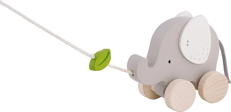 Mit einem Nachziehtier aus Holz macht das Laufen lernen gleich doppelt so viel Spaß. Der niedliche Elefant, der einem leckeren Blatt hinterherjagt, begleitet Ihr Kind beim Entdecken der Welt und animiert zur Bewegung.
