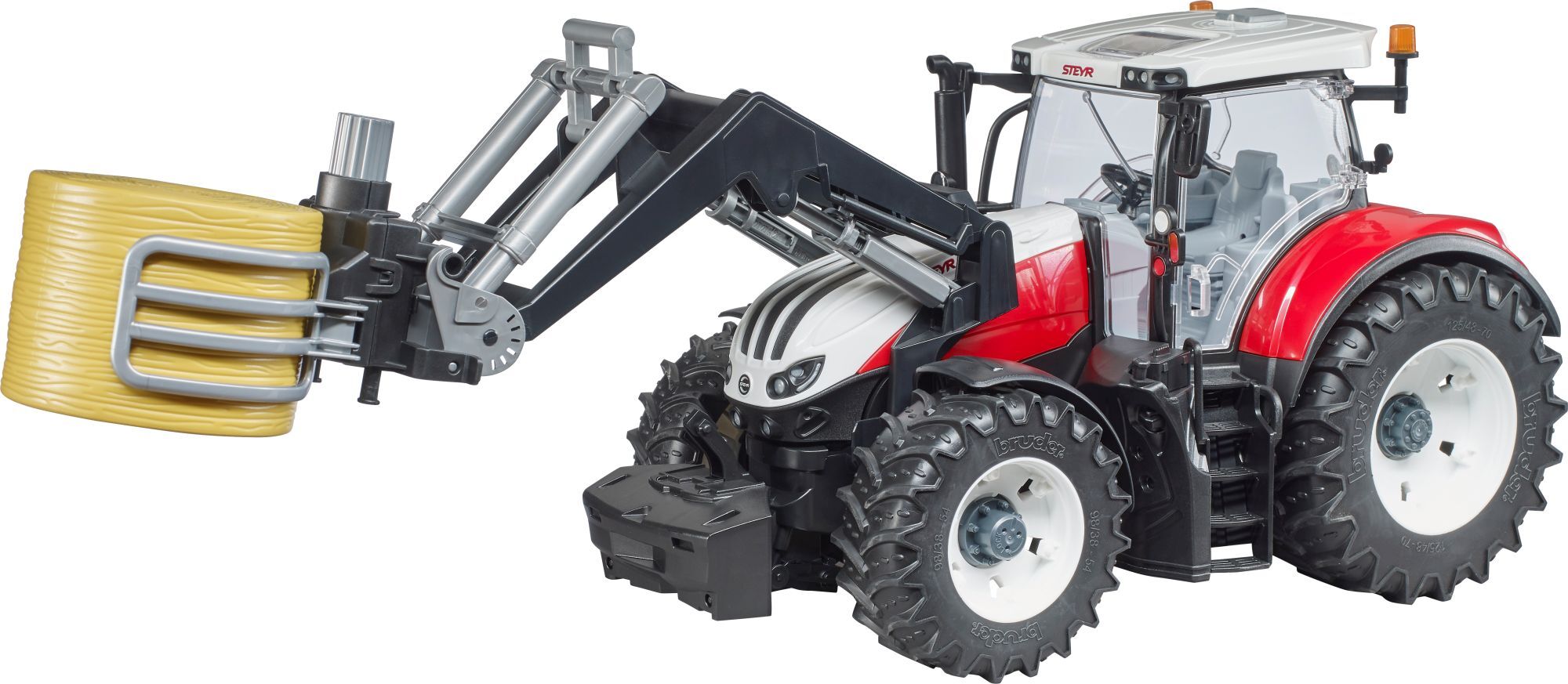 Bruder 02332 Zubehör: Ballengreifzange mit 1 Rundballen ''Die Greifzange öffnet und schließt sich durch einfaches drehen am oberen Stellrad. Die Ballengreifzange passt an alle BRUDER Frontlader für Traktoren, alle BRUDER Teleskoplader, sowie den Schäffer Hofla...