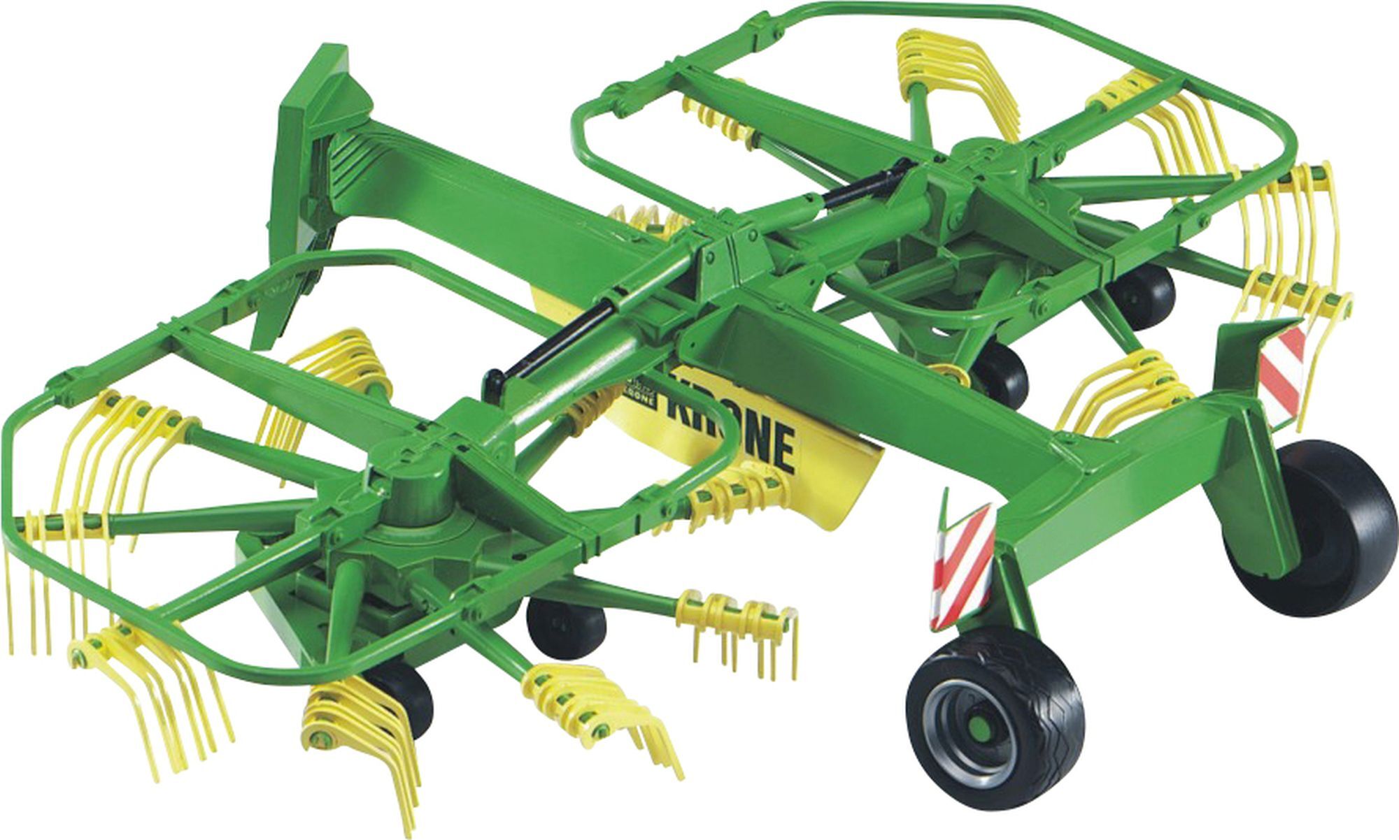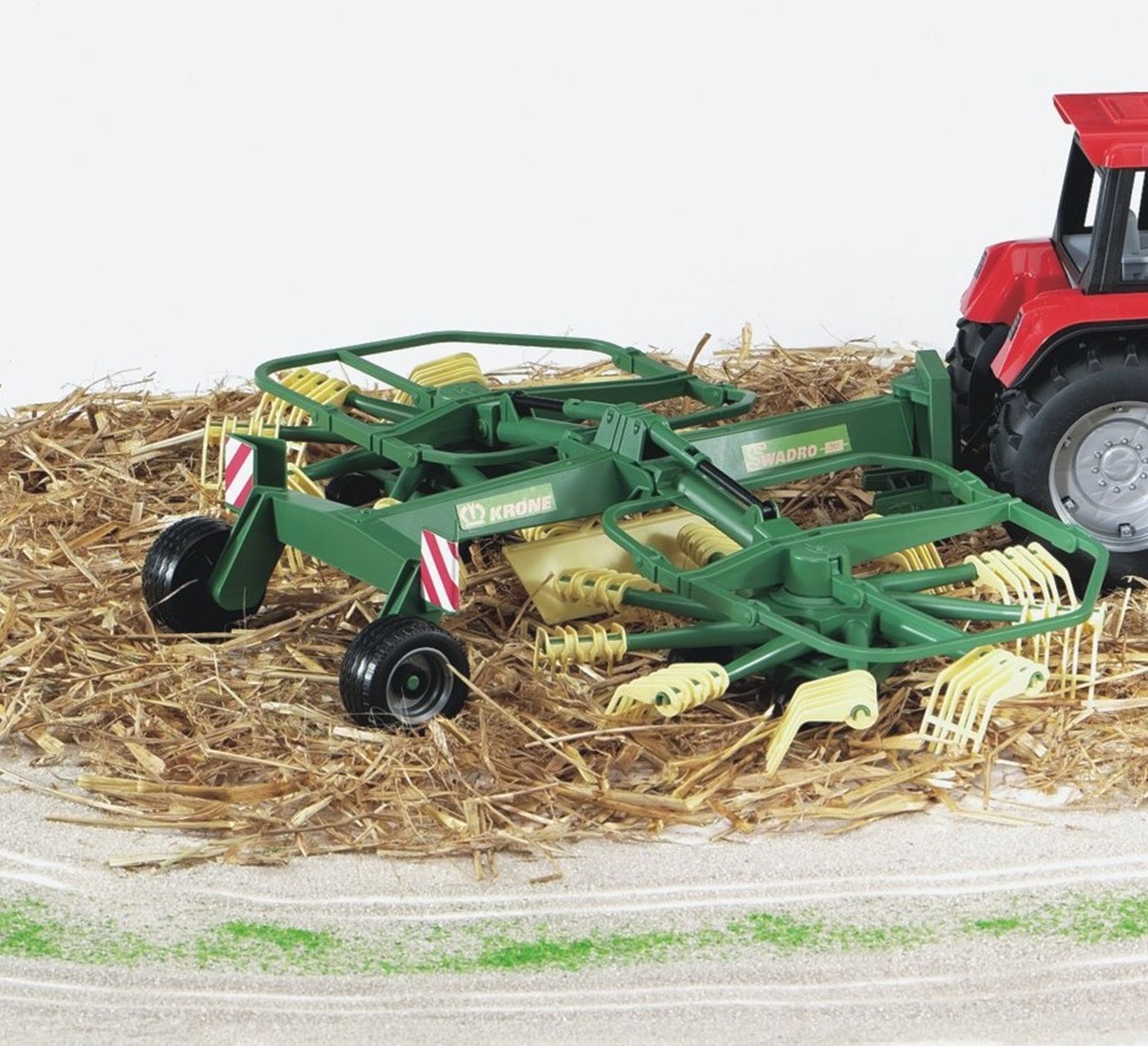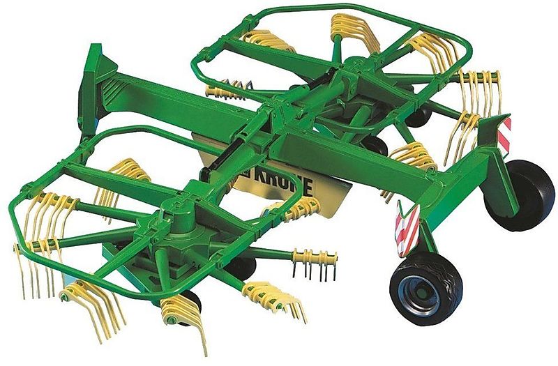 Bruder 02216 Zubehör: Krone Schwader Die Auslegearme des Krone Schwaders sind einzeln hochklappbar und die Zinken während des Fahrbetriebs beweglich. Eine ausklappbare Stütze bietet sicheren Halt. Der Krone Schwader passt zu allen Traktoren der Profi-Serie (ni...