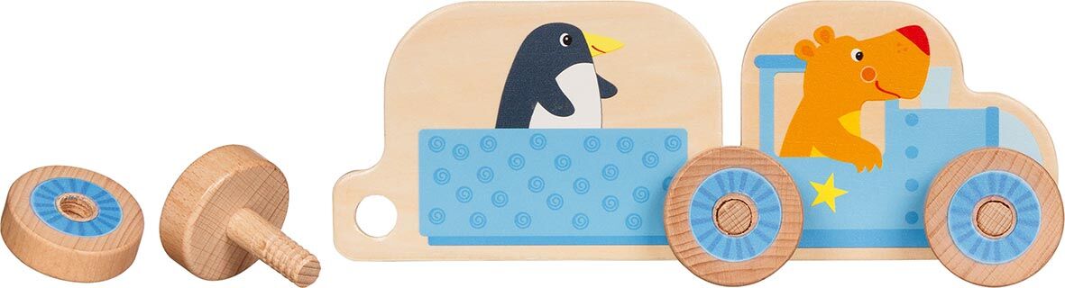 Bau dir deinen Holzzug! Zusammenbauen, umbauen, losfahren, spielen - das alles geht mit diesem Holzzug-Set ganz prima. Mit einer Gesamtlänge von ca. 50cm macht der Zug schon was her. Ein Holzspielzeug wie es sein soll.