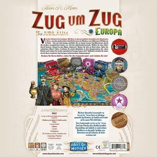 Vom Schatten des Londoner Big Ben zu den hoch aufragenden Bögen des römischen Kolosseums, von den leuchtenden Zwiebeltürmen Moskaus zum filigranen Eifelturm in Paris ? Zug um Zug Europa nimmt die Spieler seit 15 Jahren mit auf unvergessliche Zugabenteuer durch...