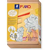 Knete, die sich leicht formen lässt. Speziell für Kinder geeignet ist «FIMO kids» mit seiner noch weicheren Konsistenz. «FIMO professional» spricht erfahrene Kreative an, die etwa filigranen Schmuck oder detailgetreue Skulpturen anfertigen möchten. «FIMO effect» lässt es krachen: Die Masse zeigt sich in Effektfarben, mit Glitzer und in zarten Pastelltönen. Schliesslich finden Sie mit «FIMOair» eine Ausführung, die an der Luft trocknet.