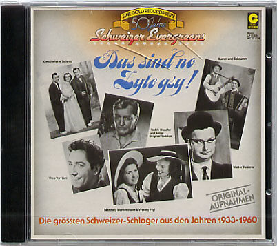 Schweizer-Schlager aus den Jahren 1933-1960. Inhalt: Nach em Räge schint Sunne /Marthely Mumenthaler und Vrenely Pfyl,Silberfäden /Vico Torriani, Ich han en Schatz am schöne Zürisee/Geschwister Schmid & Teddy Stauffer, s Guggerzytli/Bumm und Schrumm, Grüss mir...