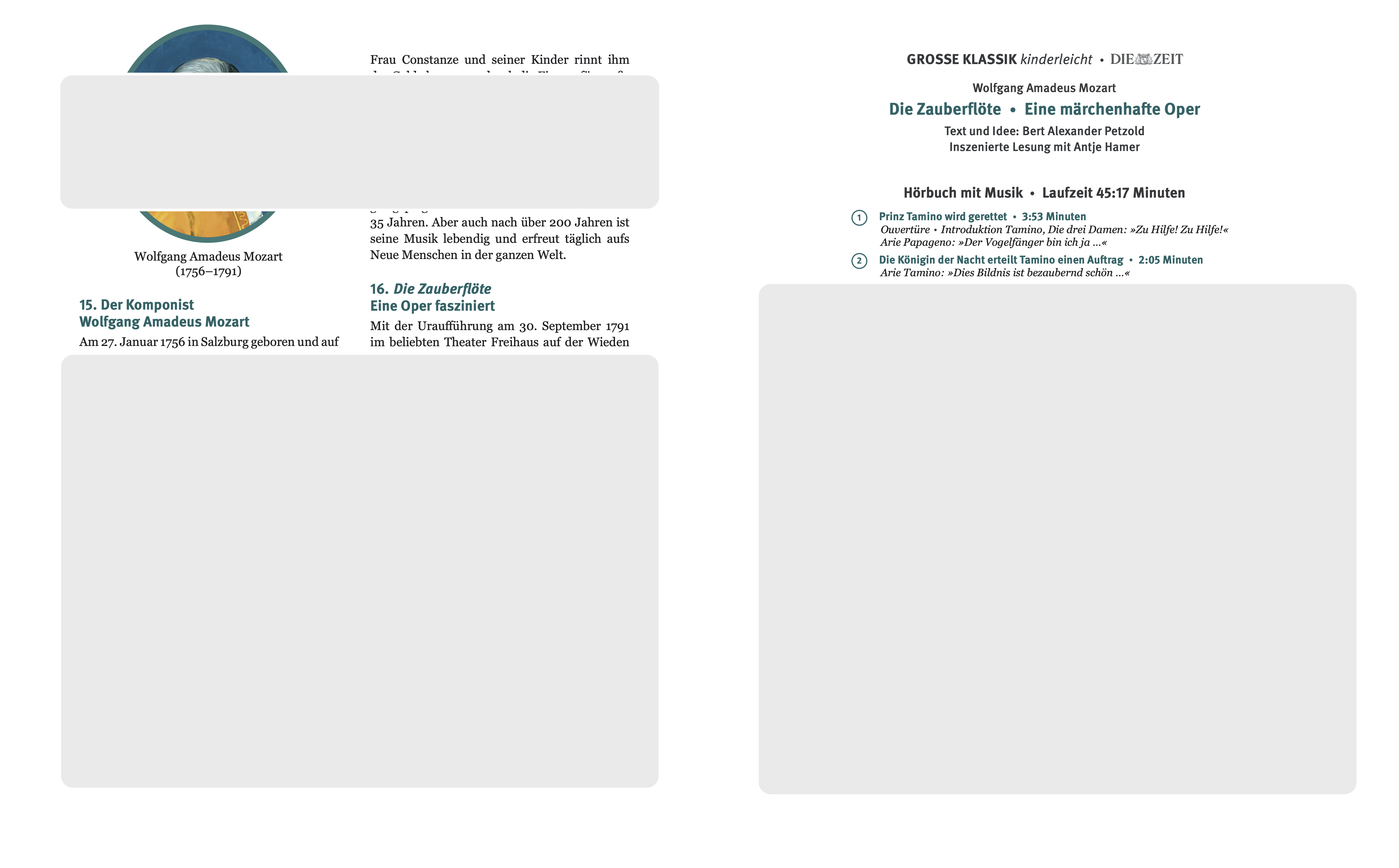Tamino soll gemeinsam mit dem lustigen Vogelfänger Papageno die schöne Prinzessin Pamina befreien, denn der gefürchtete Fürst Sarastro hält sie in seiner Burg gefangen. Damit ihr waghalsiger Rettungsplan gelingt, lässt Paminas Mutter, die Königin der Nacht, Ta...