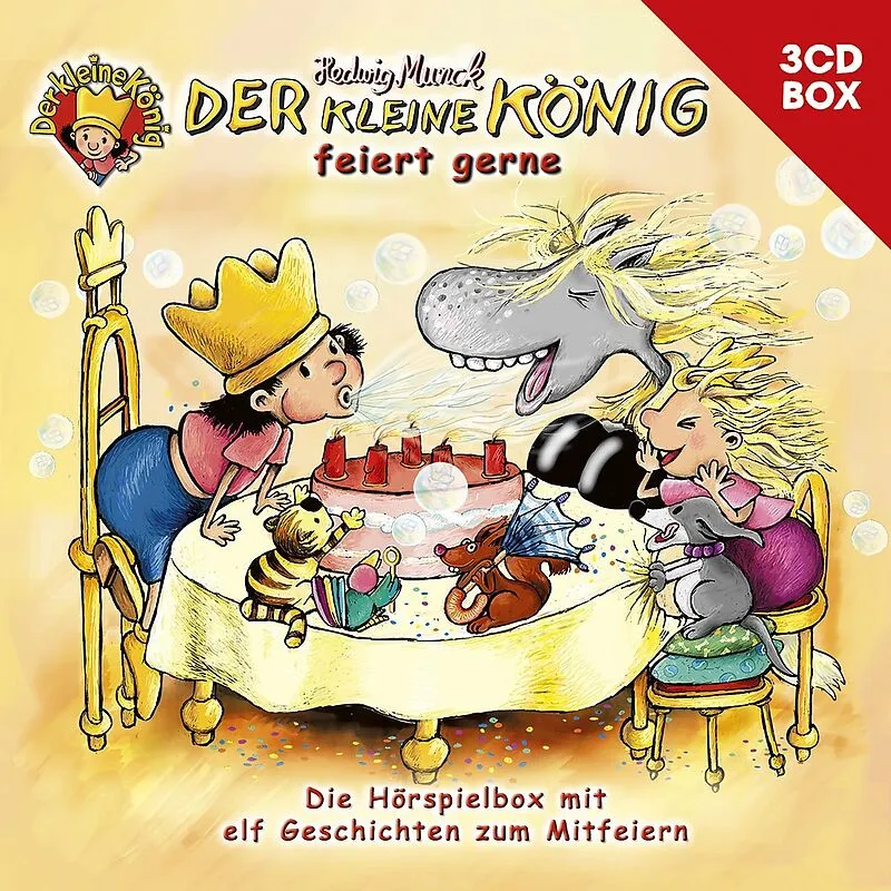 Tolle Hörspiele mit dem kleinen König!Die königlichen Hörspiele gibt es auch als attraktive Hörspielbox zu einem unschlagbaren Preis! Elf schöneGeschichten mit dem kleinen König in einer Box für jede Menge Hörspaß!Enthaltene Titel:CD1: Pfannkuchen / Der Größte...| 1 | Pfannkuchen | 19:00 | |