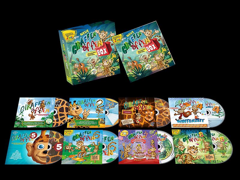 Die Giraffenaffen sind zurück und es wird giraffenaffenstark. Diesmal haben sie eine ganz besondere Überraschung für alle Fans parat: Ab dem 30. August 2024 gibt es die brandneue Giraffenaffen Box! Diese exklusive Sammleredition umfasst erstmals alle acht Albe...| 1 | Wir sind da (Giraffenaffensong) | 03:21 | |