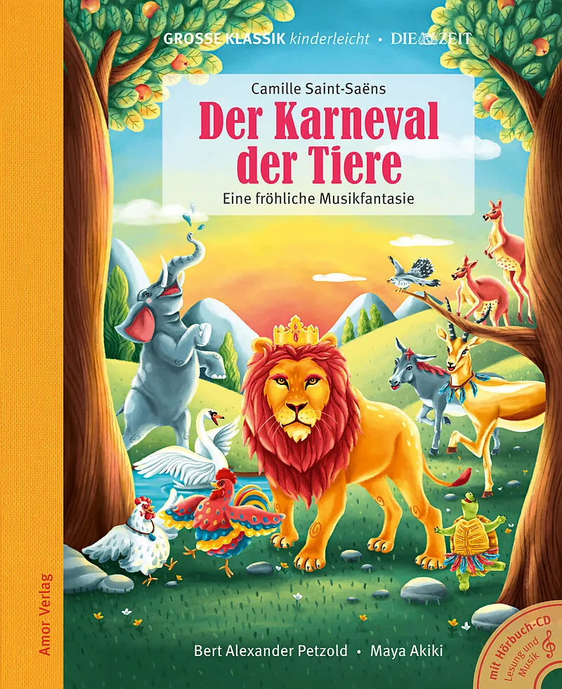 Mit freudigem Brüllen eröffnet der Löwe das Musikspektakel, das Eichhörnchen schwingt als Dirigent den Taktstock und die Hühner können es kaum erwarten, ihren einstudierten Gesang vorzutragen. Fröhliche Ballettmusik lässt Elefant und Schildkröten das Tanzbein ...Mit freudigem Brüllen eröffnet der Löwe das Musikspektakel, das Eichhörnchen schwingt als Dirigent den Taktstock und die Hühner können es kaum erwarten, ihren einstudierten Gesang vorzutragen. Fröhliche Ballettmusik lässt Elefant und Schildkröten das Tanzbein schwingen. Äußerst taktvoll ist die lustige Hüpfeinlage der Kängurus. Die Leoparden brillieren wie jedes Jahr als Pianisten. Tapfer ertragen die Gäste Vogelgezeter und schrilles Getriller der Flöten. Am Abend feiern alle Tiere gemeinsam ein buntes Sommerfest. Die fröhliche Fantasie des Komponisten Camille Saint-Saëns (1835-1921) wird für Kinder ab fünf Jahren von Bert Alexander Petzold neu erzählt und ist von der libanesischen Künstlerin Maya Akiki farbenfroh und stimmig illustriert. Der Buchausgabe liegt eine CD mit einer inszenierten Lesung mit Luca Zamperoni und mit Geräuschen sowie dem ungekürzten Originalstück bei. Der Titel erscheint innerhalb der Serie »Große Klassik kinderleicht. DIE ZEIT-Edition«.