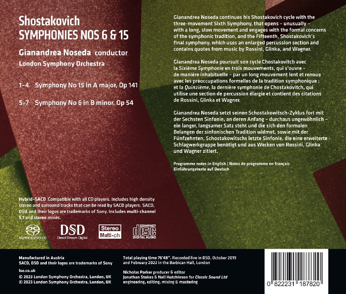 In der Fortsetzung seines Sinfoniezyklus mit dem London Symphony Orchestra dirigiert Gianandrea Noseda mit den Sinfonien Nr.6 (1939) und Nr.15 (1970/71) zwei kuriose und kontrastreiche Sinfonien von Dmitri Schostakowitsch. Nach der erfolgreichen "linientr...