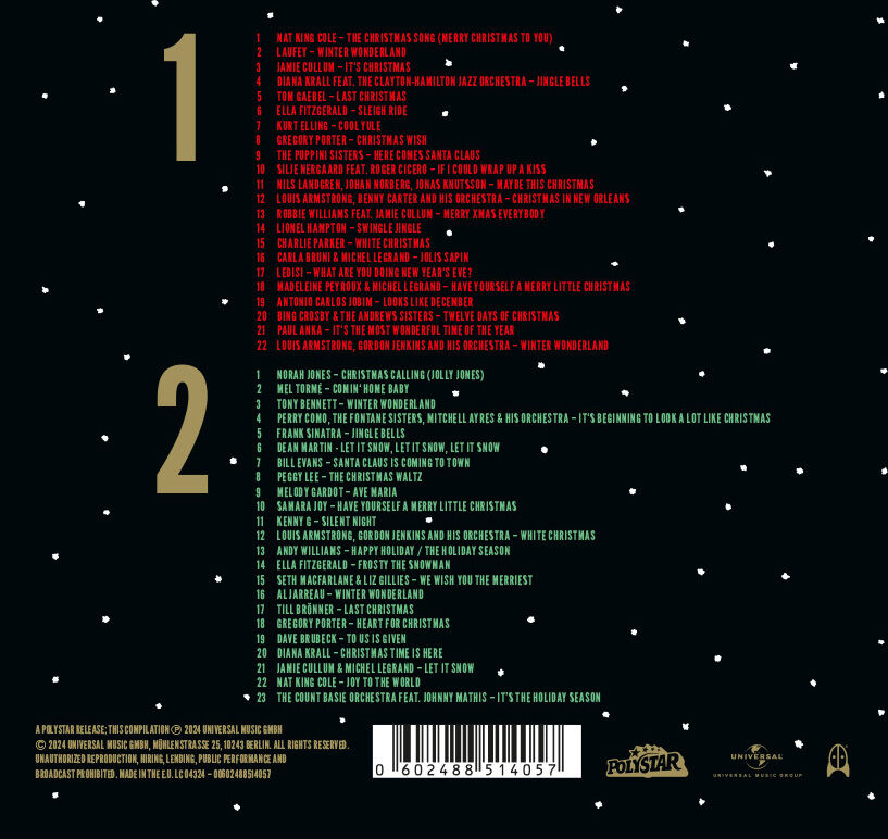 Klappentext aboutJAZZ - Christmas': Dieses Album vereint die schönsten Jazz-Versionen beliebter Weihnachtsklassiker und liefert damit eine stilvolle Musikbegleitung für die schönste Zeit des Jahres. Ob stimmgewaltige Titel wie Nat King Coles 'The Christmas Son...| 1 | The Christmas Song (Merry Christmas To You) (Remastered 1999) | 03:12 | |