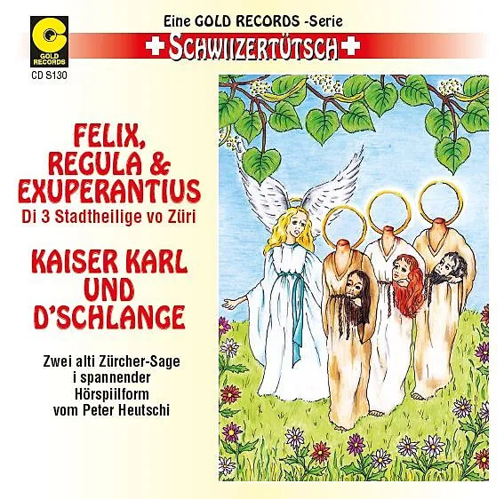 Felix,Regula + Exuperantius(di 3 Stadtheilige vo Züri),Kaiser Karl und d Schlange Zwei alti Zürcher-Sage i spannender Hörspielform vom Peter Heutschi Mitwirkendi: Peter Heutschi, René Bill, Fredy Kunz, Christiane Lanius, Remo Reinle,Rolf Sieboth, Monika Wild Z...