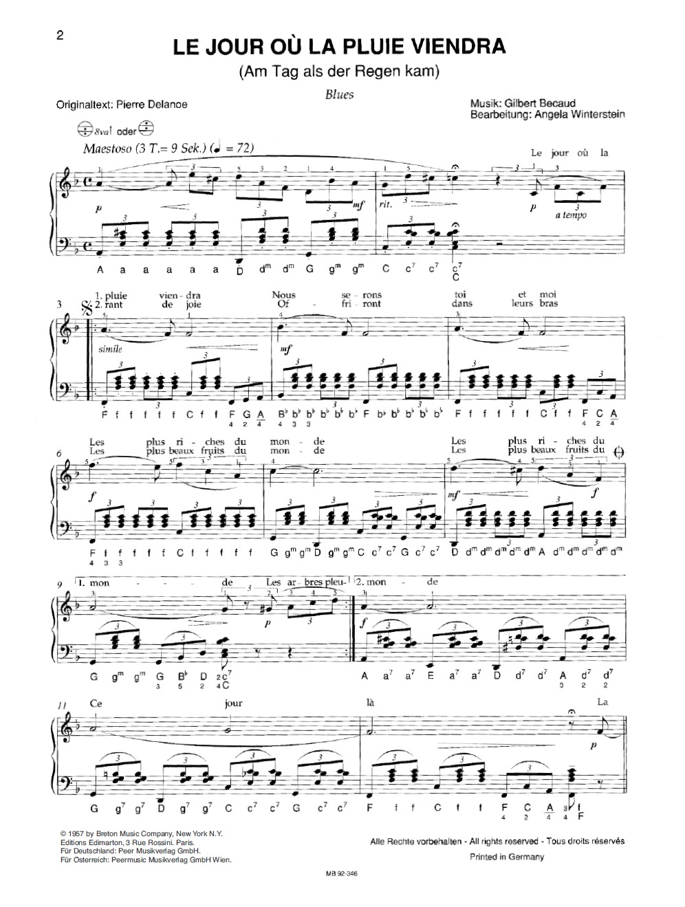 20 chanson evergreens with German and English texts for accordion. The original French texts are also included. The book contains pictures of well known French chanson artists. Klappentext Ein Songbook mit 20 unvergessenen Chansons in deutscher oder englischer...