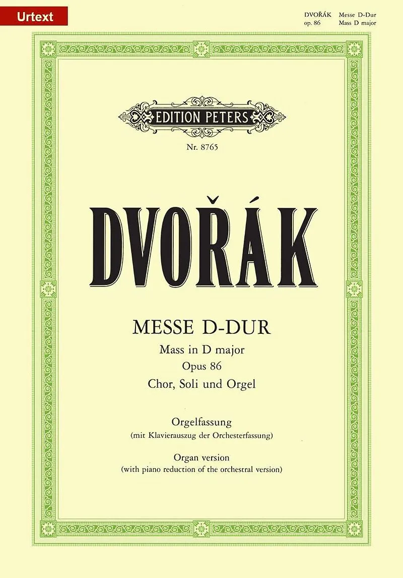 The Mass in D major was written in 1887 in a version for soloists, choir and Organ. In his mass, DvorÃk combined traditional folk style with a late romanticism. The easy vocal solos, which can also be taken on by choristers, make the work accessible to choir&...