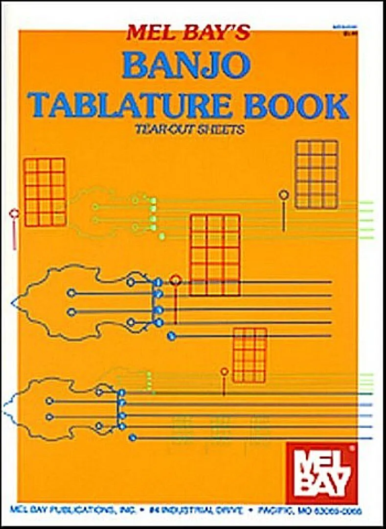 Each page is filled with tablature staves for writing banjo music. The bottom ofeach page contains five-string blank chord grids.