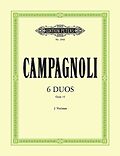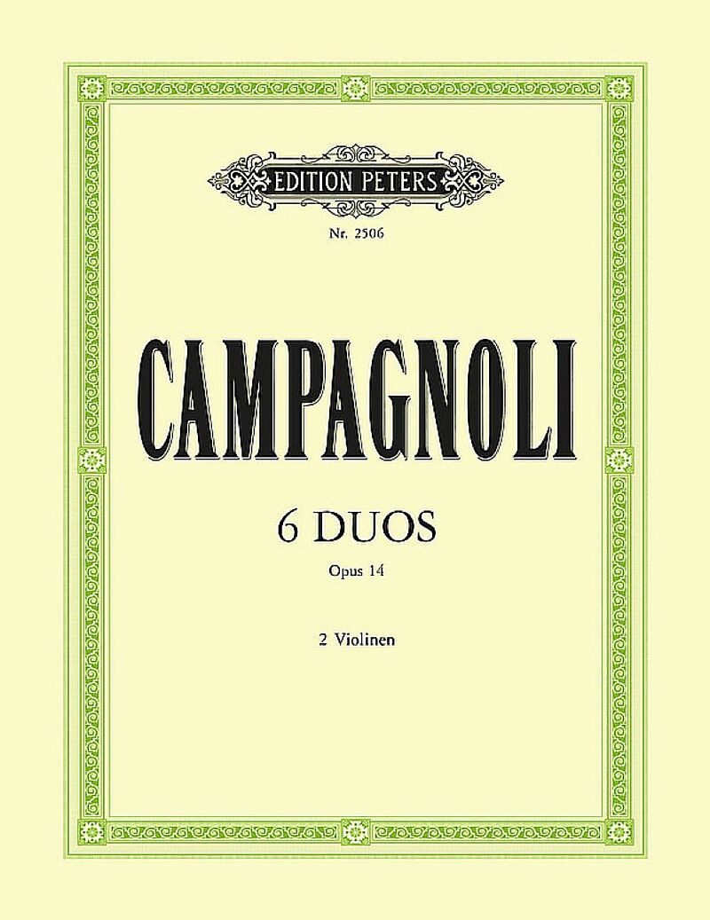 Klappentext 6 easy duos for 2 violins by Italian virtuoso violinist and composer Bartolomeo Campagnoli. Edited by Friedrich Hermann. 6 leichte Duos für 2 Violinen des italienischen Geigervirtuosen und Komponisten Bartolomeo Campagnoli, herausgegeben von Friedr...