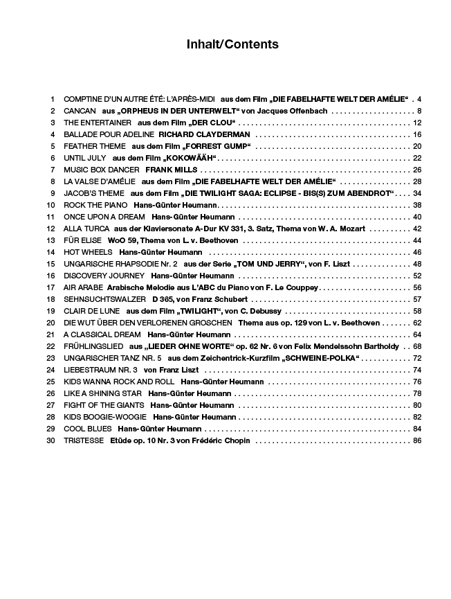 Bühne frei für Kids ist eine besonders interessante Zusammenstellung von 30 echt coolen Klavierstücken in leichten Bearbeitungen. Von Klavierhits aus den Filmen "Amélie" und "Twilight" sowie River Flows in You von Yiruma bis hin zu Klavier-...