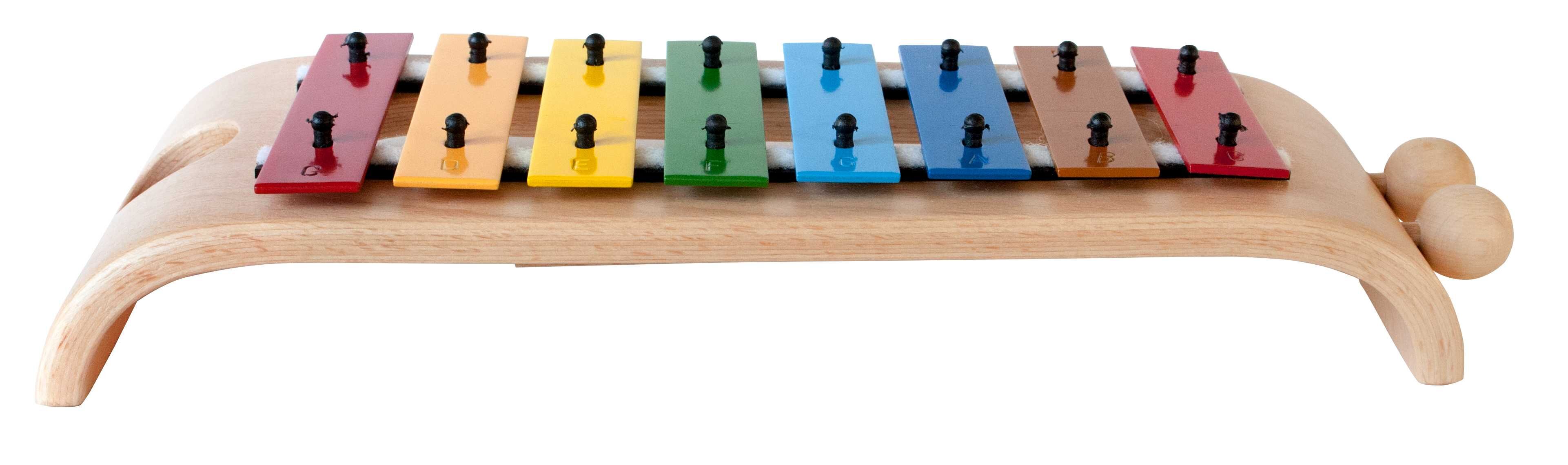 Dieses Glockenspiel ist eine echte Augenweide: Die sanft geschwungene Klangbrücke aus Buchenholz trägt 8 hochwertige bunte Klangplatten aus Metall (farblich passend zu Voggys Glockenspielschule). Sanft gerundete Kanten und die schonende Wachsbehandlung machen ...