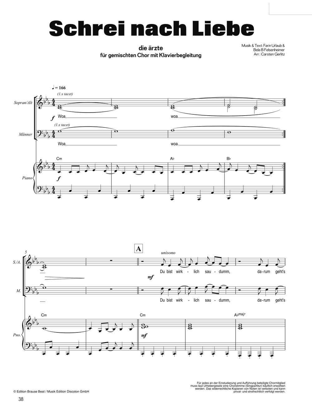 DIE ÄRZTE für Chöre, geht das? Na und ob!Wenn die drei Herren Bela, Farin und Rod auf der Bühne zu dritt zu Gitarre, Bass und Schlagzeug singen, funktioniert das natürlichst auch chorisch gemischt ums Klavier. Dieses Heft bietet fünf Hits der besten Band der W...