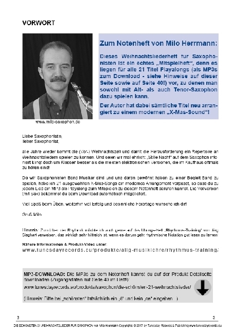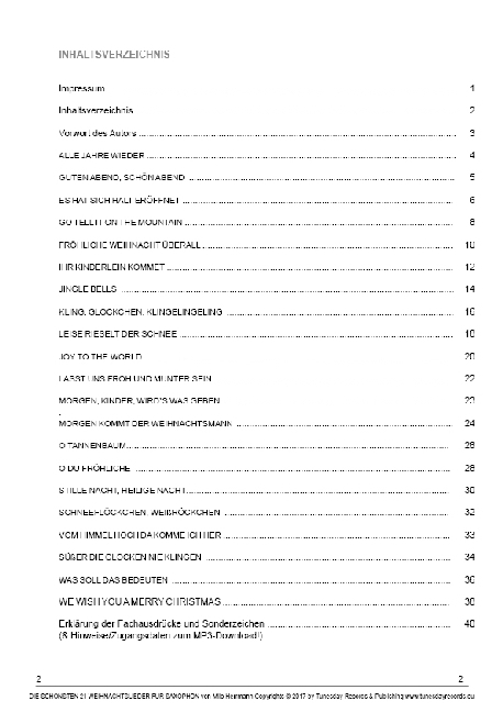 Dieses Weihnachtsliederheft für Saxophonisten ist ein echtes "Mitspielheft", denn es liegen für alle 21 Titel Playalongs (als MP3s zum Download - siehe Hinweise im Heft) vor, zu denen man sowohl mit Alt- als auch Tenor-Saxophon dazu spielen kann. Der...