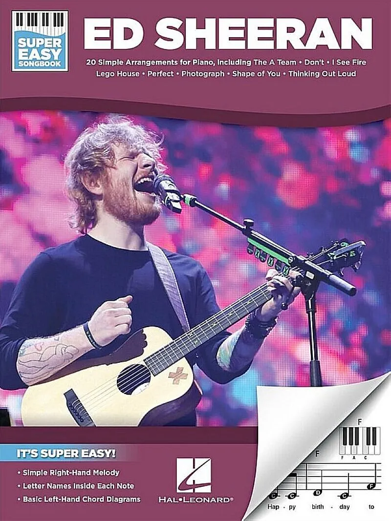 Klappentext (Super Easy Songbook). It's super easy! This series features accessible arrangements for piano, with simple right-hand melody, letter names inside each note, basic left-hand chord diagrams, and no page turns. This edition includes 20 of Sheeran's b...