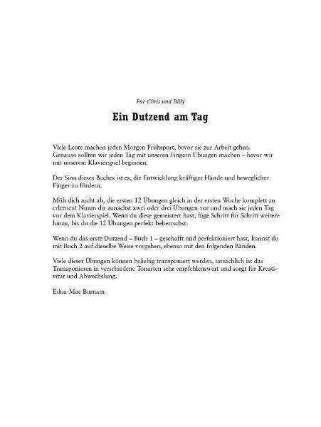 Die bekannte englische Serie A Dozen A Day, die Vorübungen und viele Technik-Übungen für den Pianisten zum Inhalt hat, gibt es nun in der deutschen Übersetzung. Ziel der Ausgaben ist die Unterstützung und Stärkung der Hände sowie die Flexibilität der Finger. B...