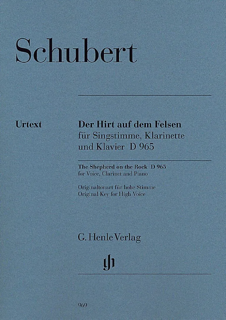 _Originaltonart für hohe Stimme Der in Schuberts letztem Lebensjahr entstandene Hirt auf dem Felsen war in gewissem Sinne ein Auftragswerk. Die Opernsängerin Anna Milder- Hauptmann, erste Leonore in Beethovens Fidelio, hatte Schubert in Briefen aus den Jahren ...