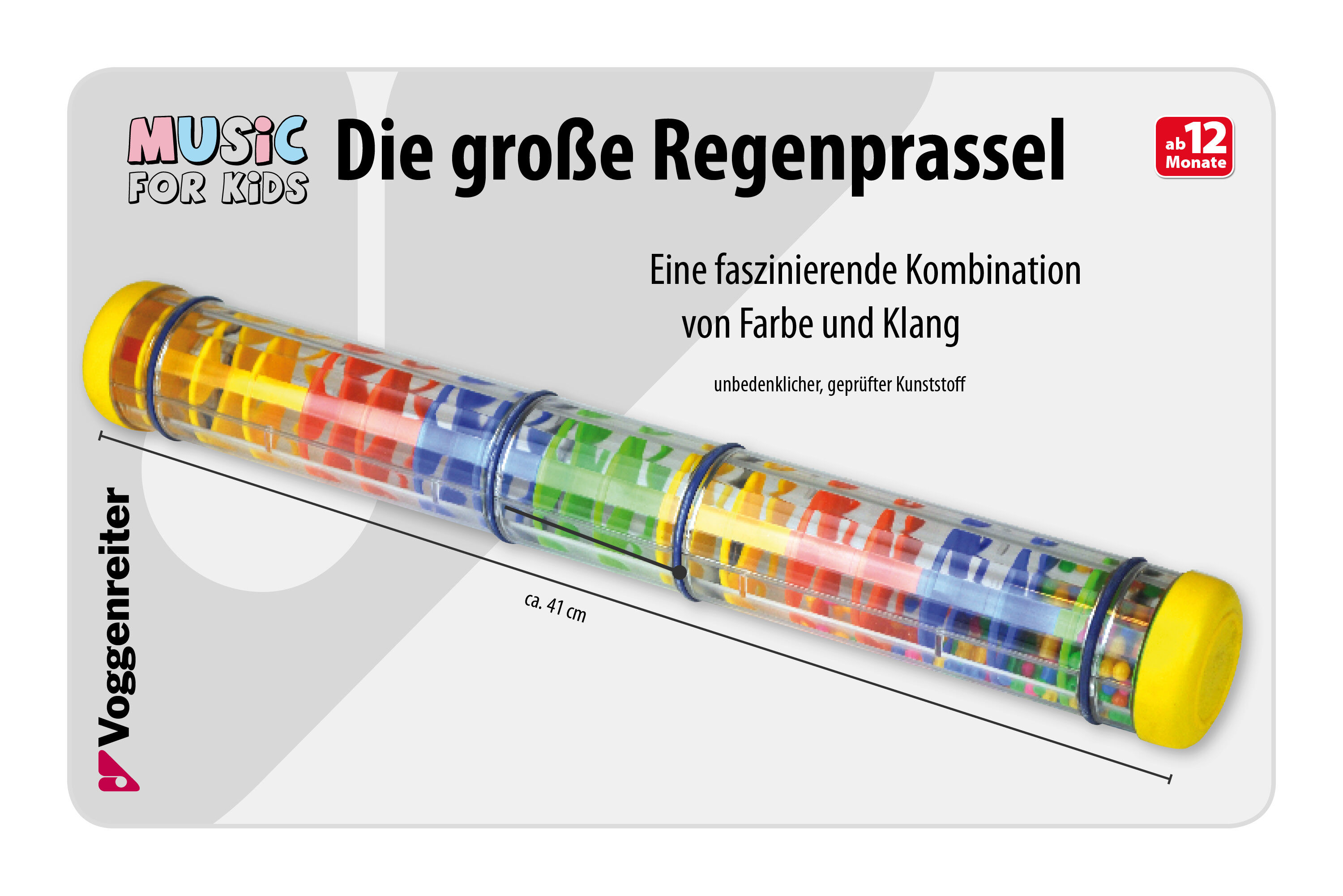 Ein bunter Regenbogen rieselnder Kügelchen erzeugt beim Drehen oder Schütteln der großen Regenprassel eine faszinierende Kombination von Farbe und Klang, die alle Sinne erfasst und das Beste: niemand wird nass! Music for KidsUnsere Produktlinie Music for Kids:...