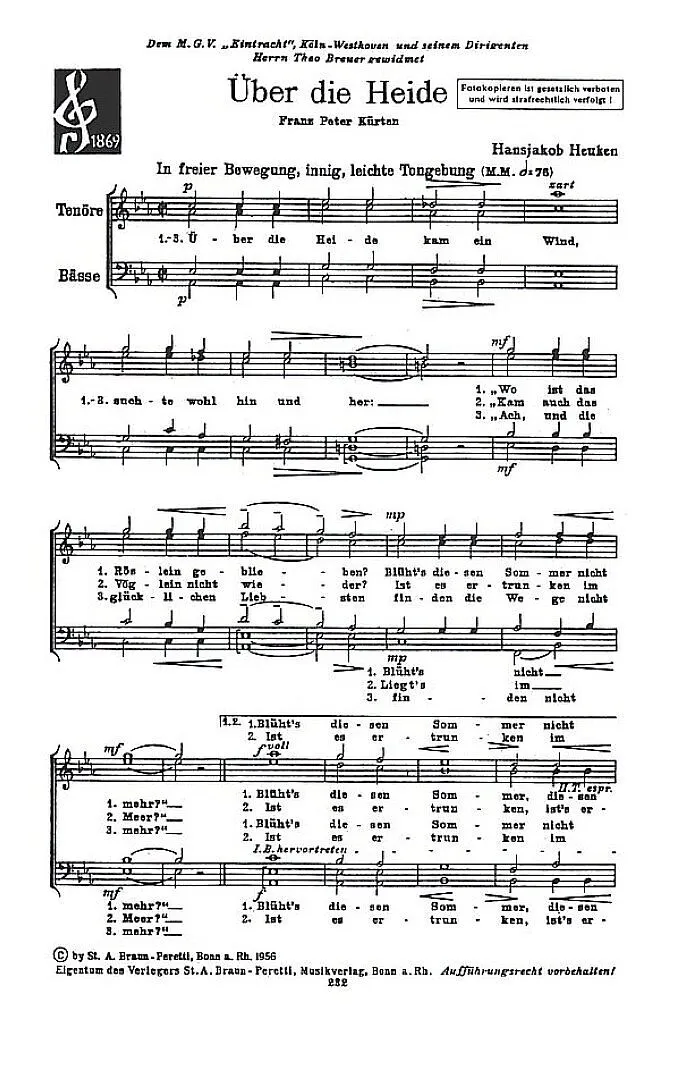 Über die Heide für Männerchor a cappella