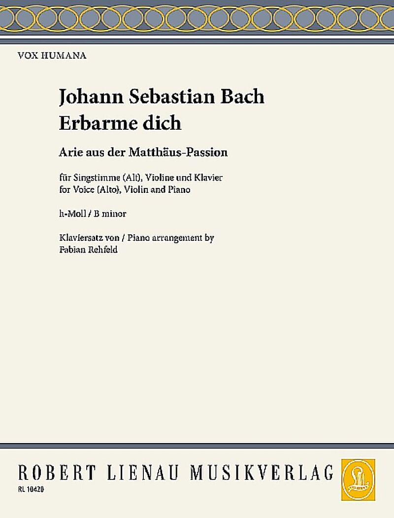 Der Königliche Professor Fabian Rehfeld erhielt 1913 den Auftrag verschiedene Klaviersätze von alten Meistern zu überarbeiten. Für diese Ausgabe der Vox Humana-Reihe wurde 1951 zudem noch die Violinstimme neu von Ernst Pätzold bezeichnet.Instrumentation:alto, ...