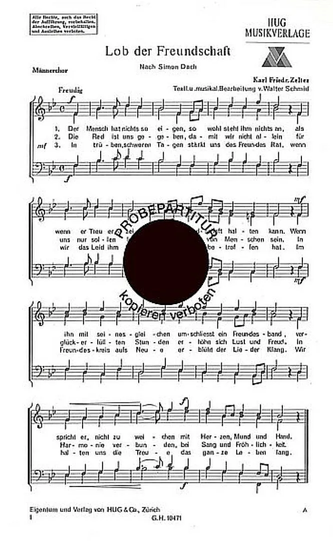 Lob der Freundschaft für Männerchor