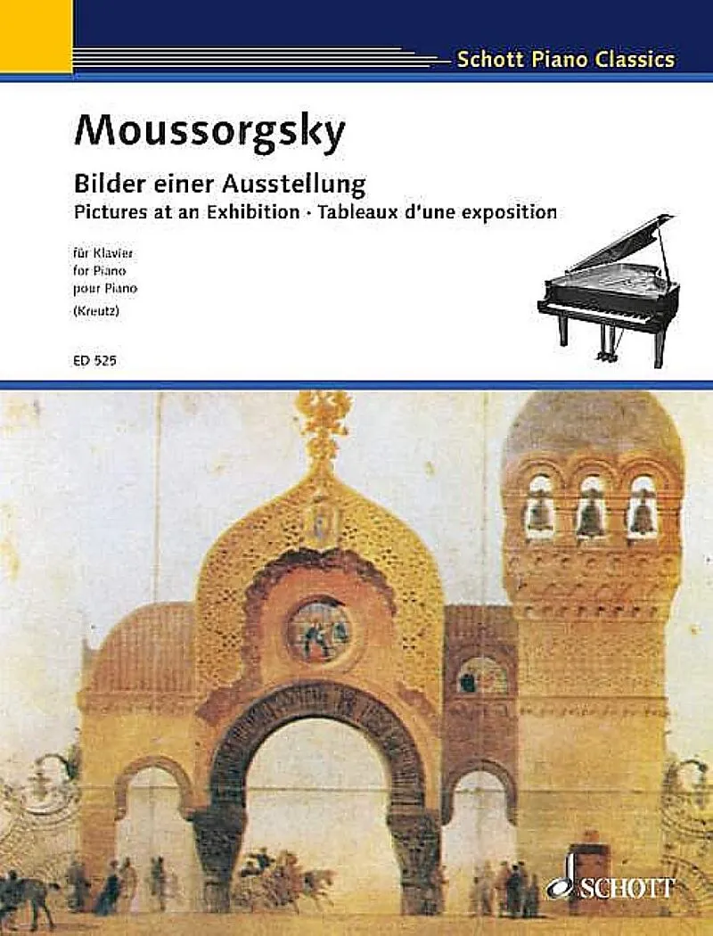 Zusammenfassung 1874 schrieb Moussorgsky den berühmten Klavierzyklus unter dem Eindruck einer Ausstellung von Bildern seines Freundes Viktor Hartmann. Die 10 Bilder werden mit den Mitteln des musikalischen Realismus sehr genau nachgezeichnet, die zwischengesch...