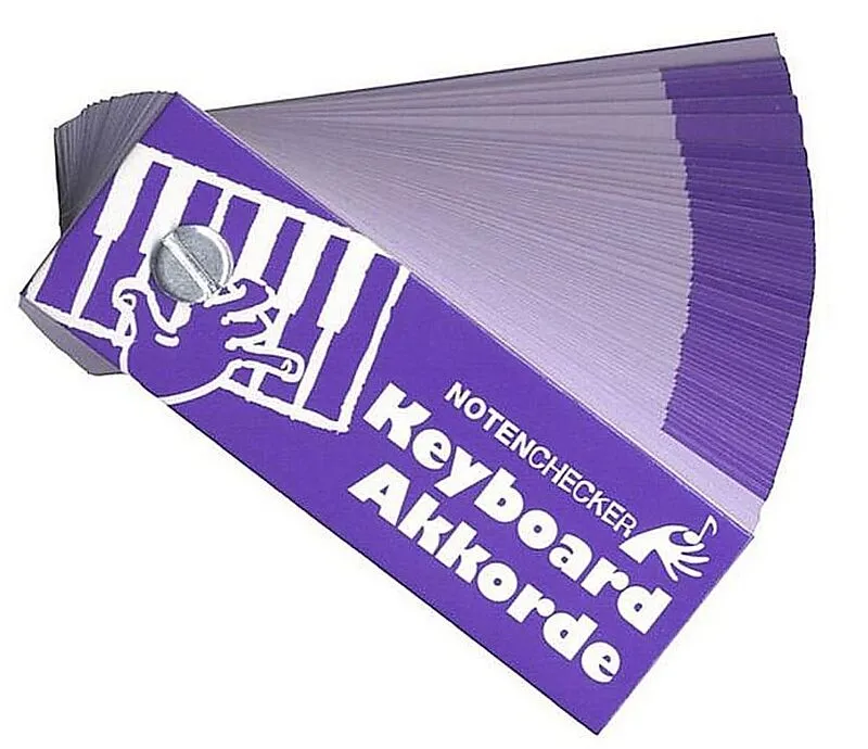 Keyboardakkorde to Go! Kann überall hin mit und ist immer dabei: Der Notenchecker Keyboard-Akkorde. Ein kleiner Fächer (Maße ca. 8.5 x 3 x 2.5 cm) mit 70 doppelt bedruckten Blättern, auf denen jeweils auf der Vorder- & Rückseite verschiedene Akkorde darges...