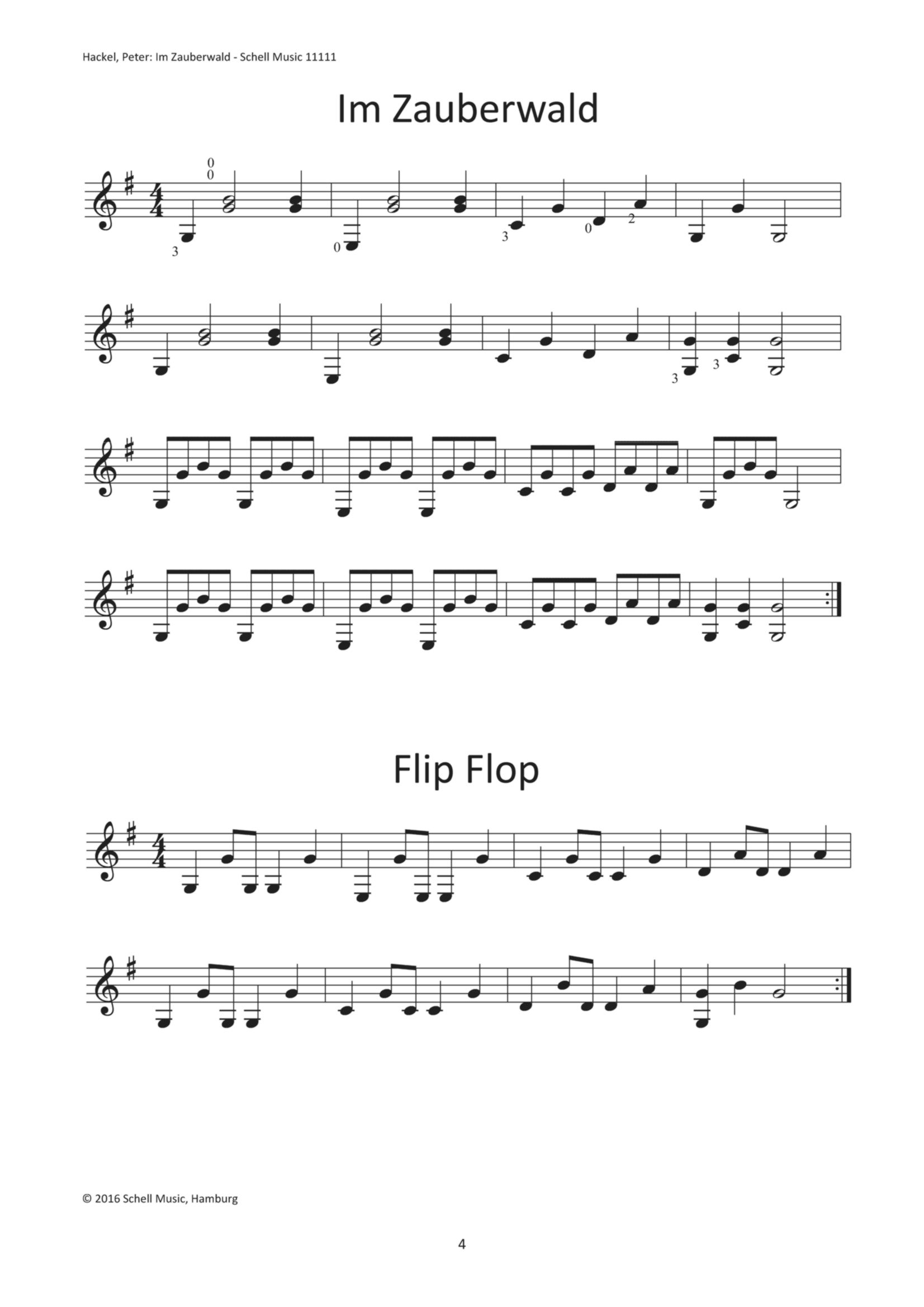 "Im Zauberwald", hinter diesem geheimnisvollen Titel eröffnet sich eine musikalische Reise auf 6 Gitarrensaiten. Mit "Segelflug", "Turbobässe" "Die Hüpfmaus" und noch vielen anderen Spielstücken geht es geradeaus hinein ...