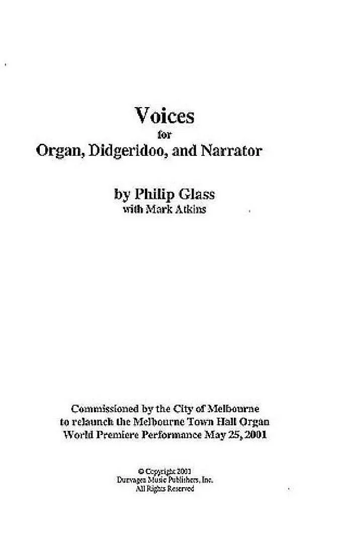 Voices for narrator, didgeridoo and organ